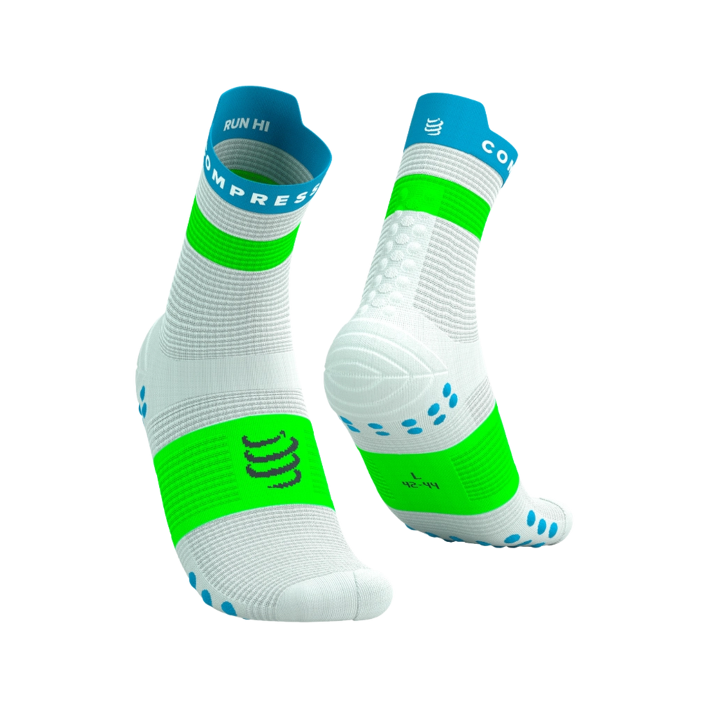 Elegir un buen par de calcetines es fundamental para tu comodidad durante la carrera. Los PRS V3 Run High de Compressport están diseñados para brindar un apoyo máximo a sus pies, una gestión perfecta de la humedad y una comodidad superior. Una banda de compresión ligera de 360 ​​° alrededor del soporte del arco evita que los calcetines giren o se deslicen en sus zapatillas. Lo más importante es que estimula el retorno venoso aportando más tonicidad a su paso. Las alas de estabilidad te darán más fuerza en el impacto. Los calcetines se han rediseñado para incluir zonas de ventilación a rayas alrededor de los pies para una ventilación total. Combinado con sus fibras de secado rápido, los calcetines se secan muy rápido para evitar mojarse los pies. Cada detalle y tecnología han sido pensados ​​para evitar el sobrecalentamiento. Una protección adicional del dedo gordo protege de los impactos del suelo. Sin costuras y sin elásticos, no crean irritación o presión innecesarias. En la puntera ergonómica, el antepié puede descansar cómodamente. Con su diseño inteligente, esos calcetines negros para correr combinarán con todos tus atuendos.